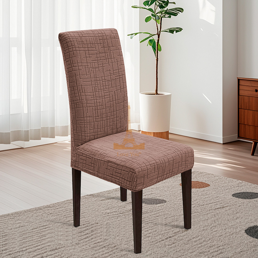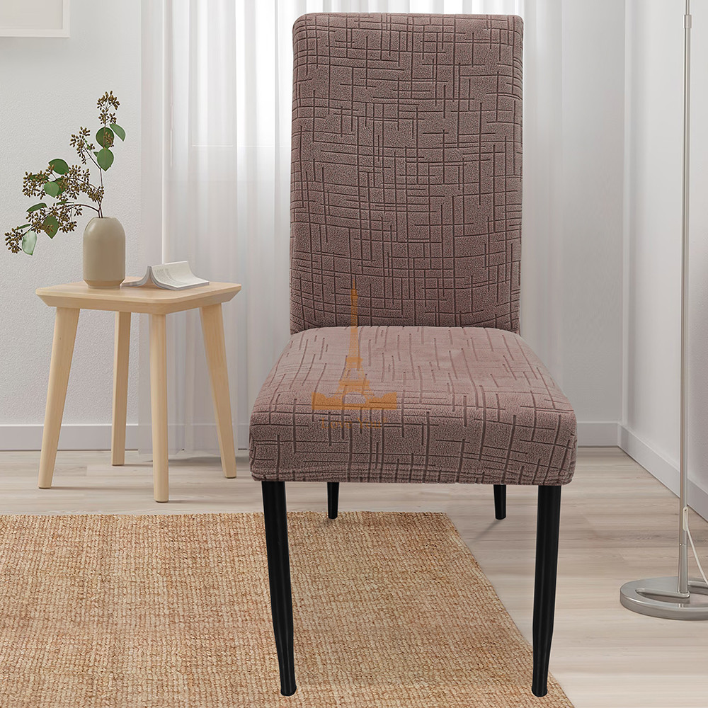 Універсальні чохли для стільців з еластичного жаккарда зі стрейчем підходять для стільців з висотою спинки від 45 до 60 см і шириною сидіння від 35 до 42 см.