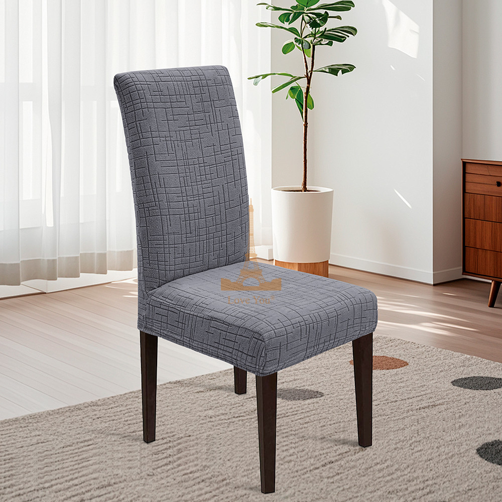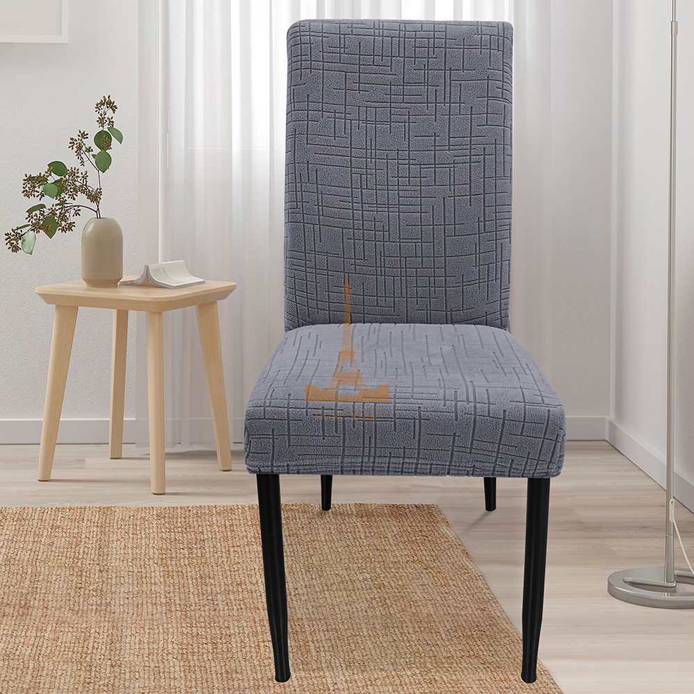 Універсальні чохли для стільців з еластичного жаккарда зі стрейчем підходять для стільців з висотою спинки від 45 до 60 см і шириною сидіння від 35 до 42 см.