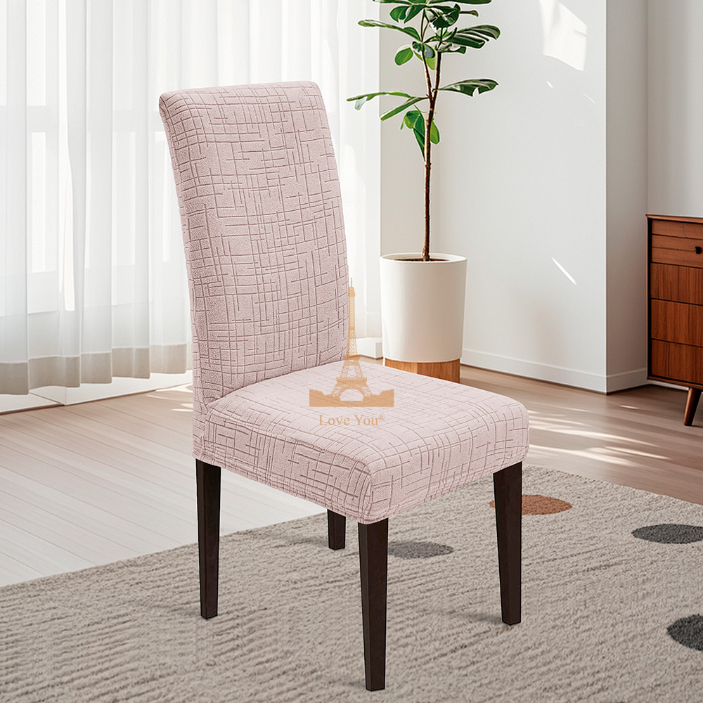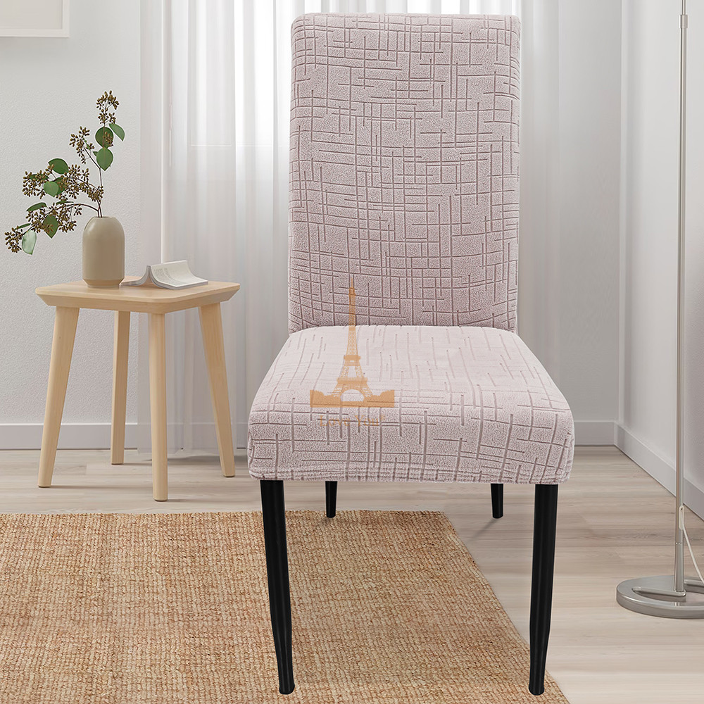 Універсальні чохли для стільців з еластичного жаккарда зі стрейчем підходять для стільців з висотою спинки від 45 до 60 см і шириною сидіння від 35 до 42 см.