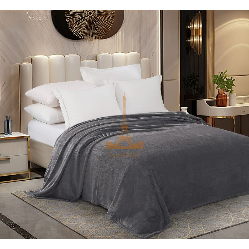 Уцінка!!! Плед фліс однотонний графіт 200х220 см Love You