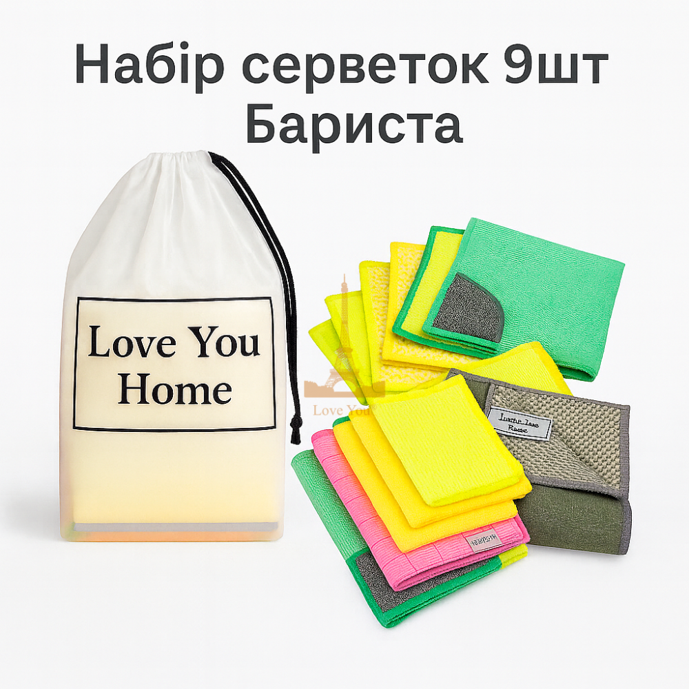 • LYH9018 (2 шт.) – Серветки для кавомашини. Одна для сталі та хрому, інша — для скла, дисплеїв і дзеркальних поверхонь 30×30 см.