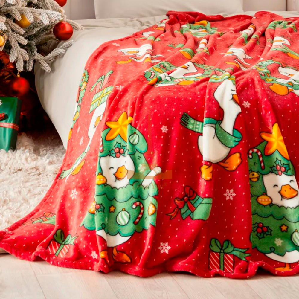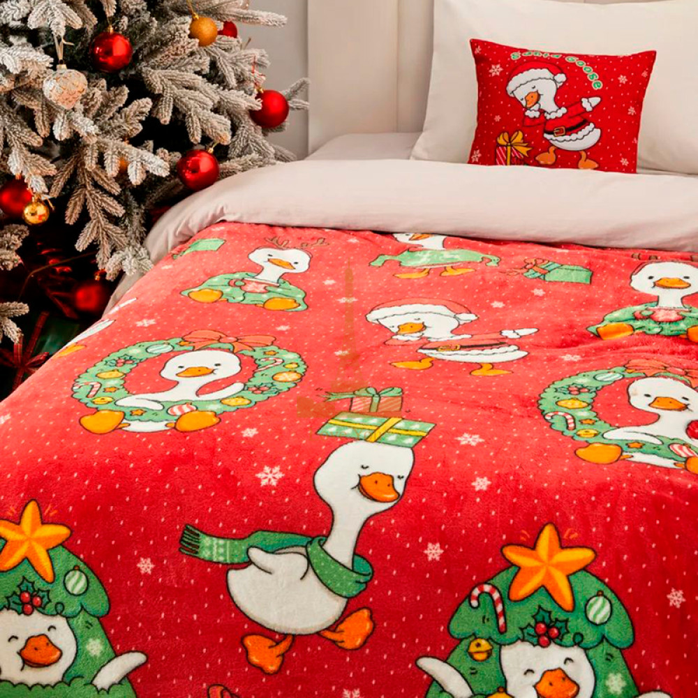 Подаруйте собі атмосферу затишку та свята з нашим зимовим пледом із веселим новорічним принтом.