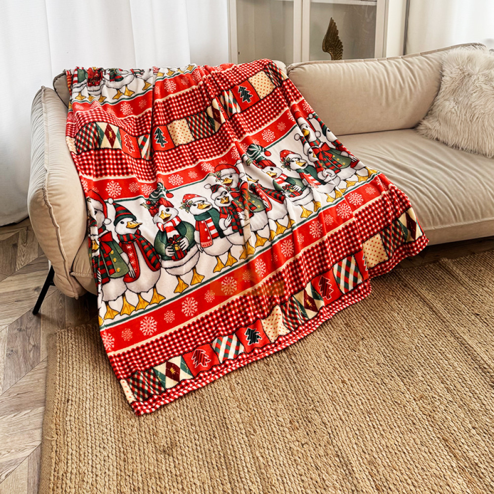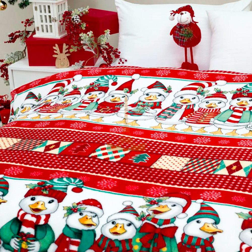 Подаруйте собі атмосферу затишку та свята з нашим зимовим пледом із веселим новорічним принтом.