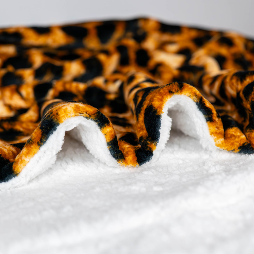 Флісовий плед «Дикий Леопард» Sherpa — двосторонній, теплий і неймовірно м’який аксесуар для дому: з одного боку щільний приємний фліс 280 г/м² із леопардовим принтом, з іншого — пухнаста кремова шерпа, що дарує максимум затишку. Легко поєднується з інтер’єрами від сканди до лофту, не мнеться, швидко сохне та зберігає форму після прання. Ідеальний для дивана, спальні, тераси чи подорожей, гарна ідея для подарунка. Доступні розміри: 150×200 см і 200×220 см. Догляд простий: машинне прання при 30°C на делікатному режимі, м’які засоби без відбілювачів, сушити природним шляхом, не прасувати й не віддавати в хімчистку.