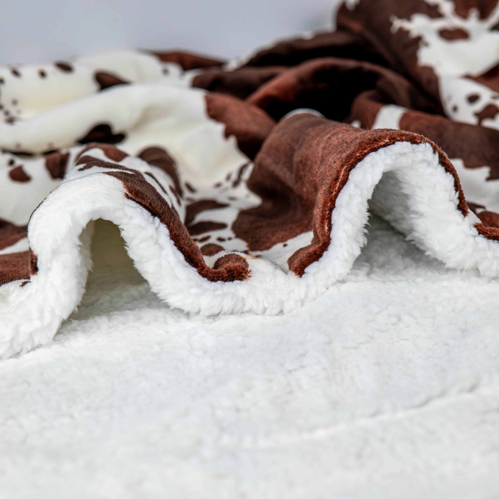 Флісовий плед «Коровка» Sherpa — двосторонній, теплий і неймовірно м’який аксесуар для дому: з одного боку щільний приємний фліс 280 г/м² із коричнево-білим коров’ячим принтом, з іншого — пухнаста кремова шерпа для максимального затишку. Легко поєднується з інтер’єрами від сканди до кантрі, не мнеться, швидко сохне та зберігає форму після прання. Ідеальний для дивана, спальні, тераси чи подорожей, чудова ідея для подарунка. Доступні розміри: 150×200 см і 200×220 см. Догляд простий: машинне прання при 30°C на делікатному режимі, м’які засоби без відбілювачів, сушити природним шляхом, не прасувати й не хімчистити.