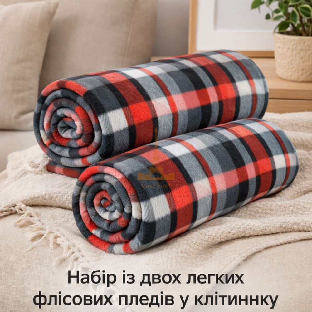 Набір із двох легких флісових пледів Шотландський затишок Love You