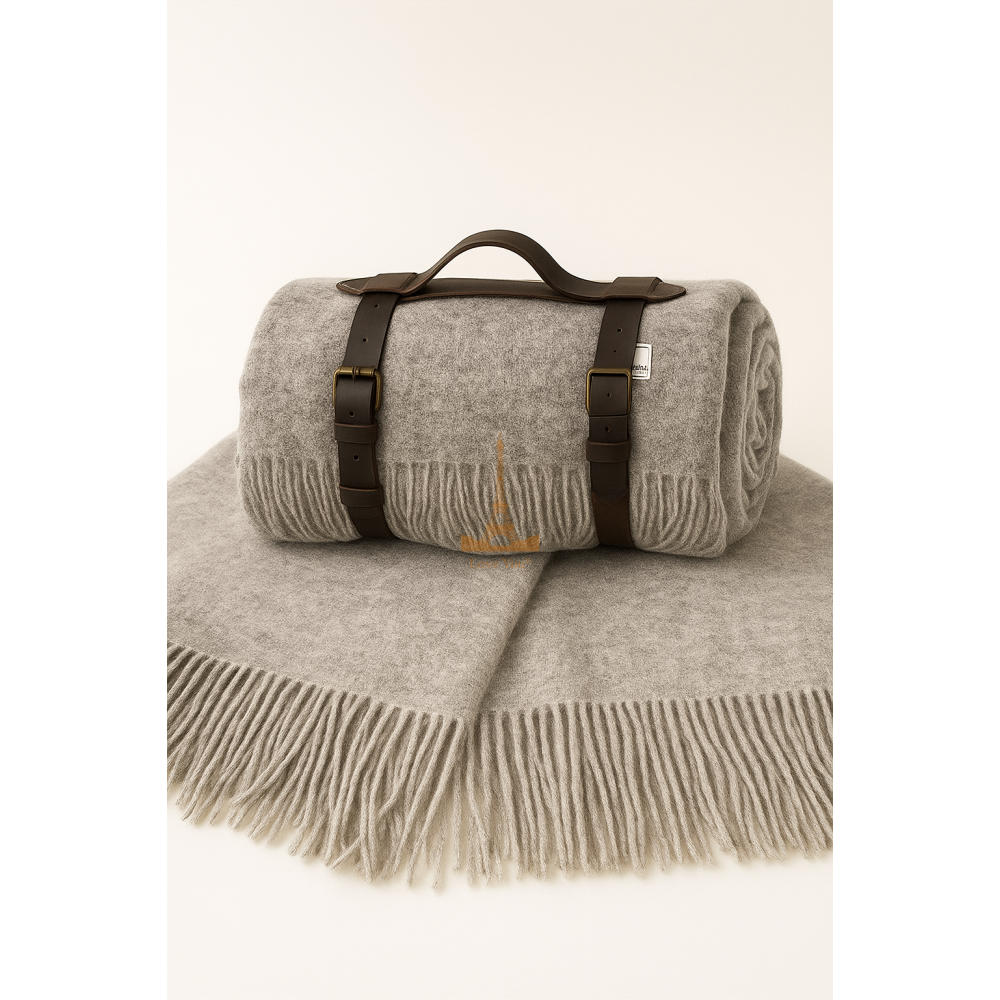 Натуральна вовна створює приємне відчуття тепла, добре утримує тепло та забезпечує комфортний відпочинок. Плед комплектується стильним і зручним шкіряним ременем, завдяки якому його легко брати з собою в подорож, на пікнік чи в офіс, а вдома він стає елегантним акцентом інтер’єру.